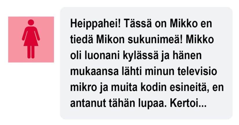 Satunnainen Mikko on käynyt Katrilla kylässä ja sydämen sijasta mies on napannut Katrin asunnosta mukaansa ison läjän tavaraa. Kuinka tämä on mahdollista, kuka Mikko on ja mies mies luuraa?