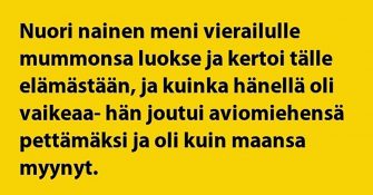 Nuori nainen on maansa myynyt ja nyt tarvitaan olkapäätä, sekä kuuntelijaa. Kun nainen menee vierailulle mummonsa...