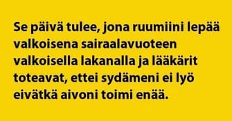 Pysäyttävät viimeiset sanat, joista syntyy tekoja ja uutta toivoa. Lopun toive ja kehotus saa pysähtymään hetkeen.