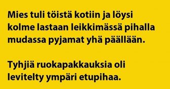 Kaaos ja kauhistuksen kanahäkki odottaa miestä, kun hän saapuu töistä kotiin. Onko talossa ollut varkaita onko kämpässä...