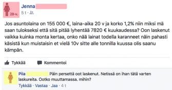 Jos laskupää tulostaa tällaisia laskelmia, niin kannattaa ehkä jättää pankissa käynti väliin ja jäädä vuokralle.