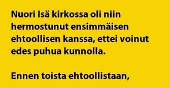 VITSIT: Hermostuneen isän ehtoollinen johtaa piispan puhutteluun