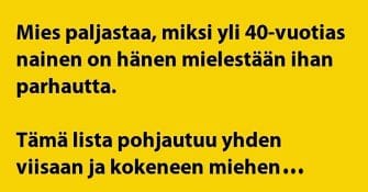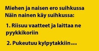 Listaa lukiessa toiset nyökkäävät, toiset tuhahtelevatm mutta kun katse käännetään miehiin, niin kaikki nauravat.