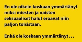 Naisilla ja miehillä ei tämä saman tasan, henkisten tarpeiden, toiveiden ja tahtotilojen kohtaaminen ole helppoa, eikä...