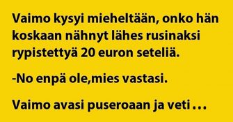 Tämä homma ottikin aivan toisen suunnan minkä alussa voisi päätellä. Miehellä on jäänyt rusinat ja rypyt näkemättä,...