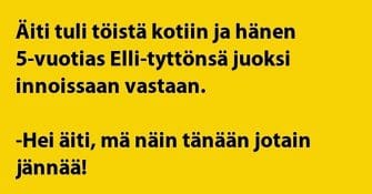 Elillä on ollut jännä päivä. Nyt hän kertoo siitä innoissaan äidille, mutta onko äiti innoissaan?