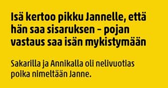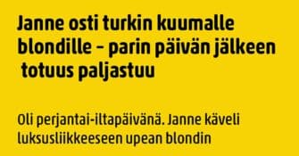 Janne on iskenyt itselleen nuoren ja kauniin naisen. Kun pariskunta saapuu kauppaan, niin katseet kääntyvät. Janne on...