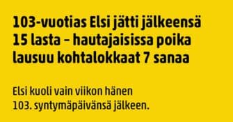 Kun pääsee yli sadan vuoden ikään, niin voi varmuudella sanoa, että on sattunut ja tapahtunut. Elsin tapahtumarikas...