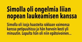 Simolla on isoja haasteita rakkaan vaimonsa kanssa, kun mennään makuuhuoneen puolelle. Mies ei kestä pitkään ja hermot...
