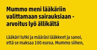 Mummo menee lääkäriin tutkittavaksi, mutta kun koittaa maksun aika, niin alkaa ääni kellossa muuttumaan.