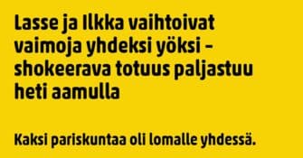 Vaatii rohkeutta ja itsevarmuutta lähteä tällaisiin vaihtokauppoihin. Vaikka kaikki alkuun suostuisivat, niin jossain...