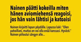 Nainen päätti kokeilla miehensä reaktiota, jos hän vain lähtisi menemään