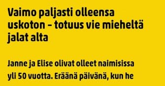 Tässä parisuhteessa puhutaan nyt asiat halki, poikki ja pinoon. Onko vaimo ollut uskoton?