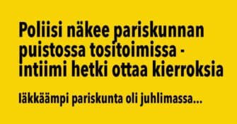 Mies tulee aikaisin kotiin ja haluaa yllättää vaimonsa. Kotona on kuitenkin tilanne ja paniikki iskee.