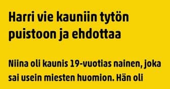 Harri tekee rohkeita ja arveluttavia ehdotuksia kauniille tytölle. Mikä mahtaako taka-ajatus saa tuulta alleen?