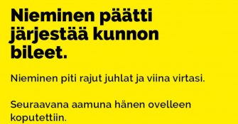 Jälkimainingeista päätellen on olleet railakkaat bileet.
