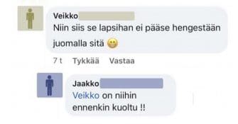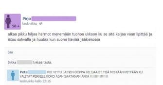 Pirjo avautuu ja äijä laittaa heti vastapalloon. Kalja läikkyy ja sitten huudetaan!