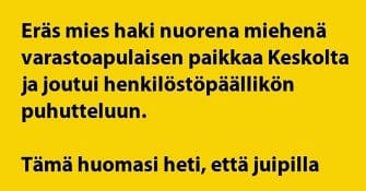 Siinä on ollut henkilöstöpäällikkö ihmeissään, kun tavaraa alkaa ilmestymään pöydälle, mutta aspiriinit loistavat...