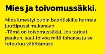 Toivomuspussien ja säkkien kanssa pitää olla tarkkana. Ensin tietenkin pitää päättää mitä toivoo, ja toiseksi miten sen...