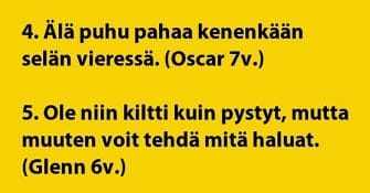 Eikös se niin, ole, että lasten suusta kuulee totuuden. Ja jos näin on, niin eiköhän oteta nämä käskyt käyttöön.