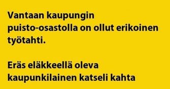 Kaupungin hommissa ajoittain korostuu sanonta "tee työtä, jolla on tarkoitus".
