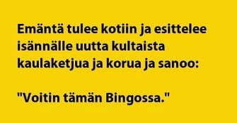 Vaimo kiikuttaa aikamoisia ostoksia kotiin. Onko kyse onnesta vai jostain muusta?