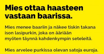VITSIT: Mies menee baariin ja tarttuu haasteeseen – kolme erikoista testiä