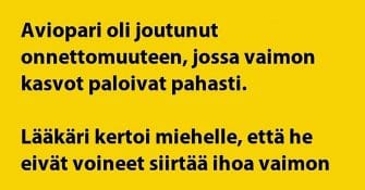 Tämä aviopari on joutunut rankkaan kolariin ja jopa vaimon kasvot ovat palaneet. Saadaanko tilanne pelastettua?