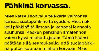 Ei ole nyt vaimosta apua, kun pähkinä juuttuu korvaan. Onko pojan koltiaisen neuvoista mihinkään?