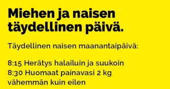Minkälainen on täydellinen päivä nainen ja miehen näkökulmasta?