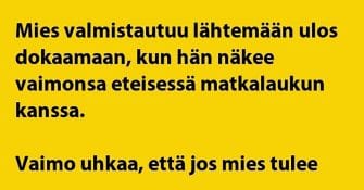 VITSIT: Juoppo mies selittää toilailujaan vaimolleen – mistä rahat ovat ilmestyneet?