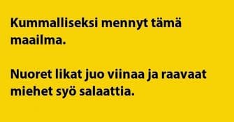 Mitä sitä mies viimeisenä elinpäivänään tahtoisi muuta kuin heiluttaa peittoa. Tosin, jos mies on näinkin aktiivinen,...