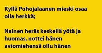 Ja mitä vielä. Kyllä se pohjalainen mieskin osaa olla herkkä. Siihen vaaditaan vaan oikea hetki, muutama koettu hetki...