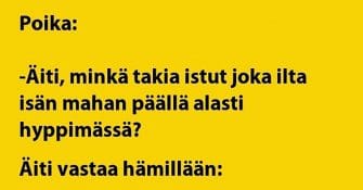 Äidin touhu on sen verran erikoista, että se saa perheen pojan hämilleen. Ja koska kysyvä ei tieltä eksy, niin nyt on...