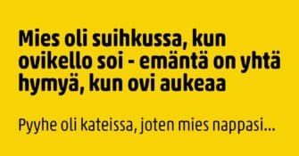 Juuri kun mies on päässyt suihkuun, niin ihana rentouttava ja puhdistava sessio keskeytyy. Ovikello soi, joku on...