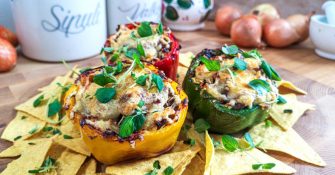 Täytetyt paprikat a’la Mexicana – jauheliha-tortillasipsi-sipuli täytteellä paahdetut arkiherkut