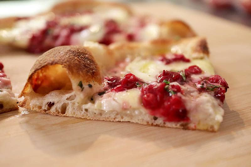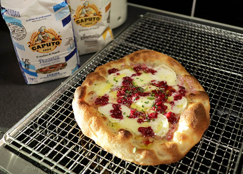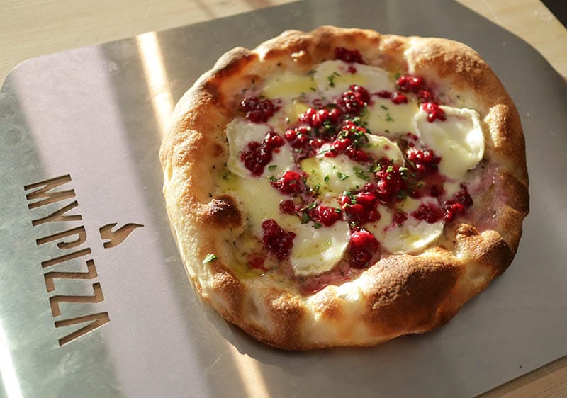Ota pizza pois uunista, lisää vuohenjuustoa, mozzarellaa sekä puolukoita!