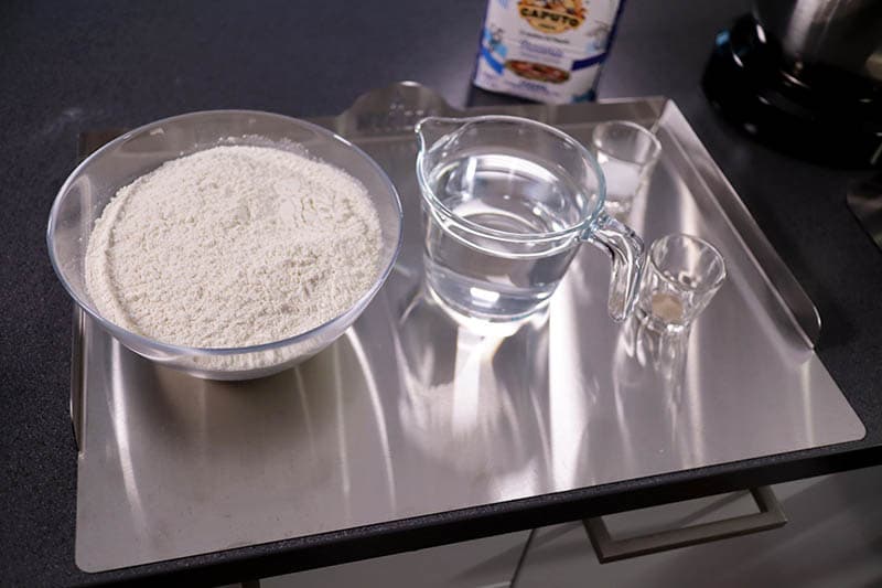 Kaada vesi yleiskoneen kulhoon hiivan ja suolan kanssa.