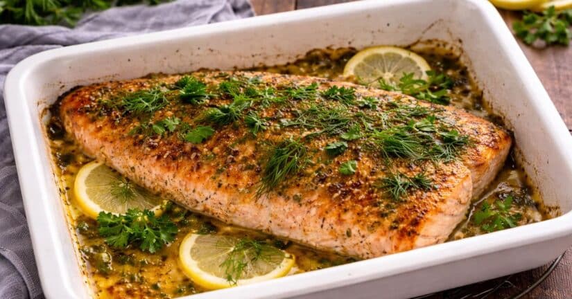 Sinapin lempeä potku ja tuoreet yrtit nostavat klassisen uunilohen uudelle tasolle ja lopputulos on ihanan mehevä.