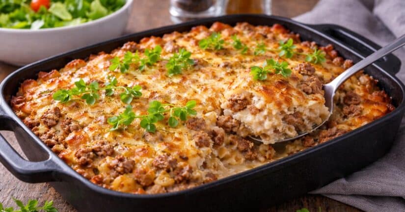 Paras makaronilaatikko sisältää aimo annoksen makua ja sen koostumus on mehevä. Tämä onnistuu, kun jauhelihan umami-makua nostetaan esiin ja munamaitoa viritetään.